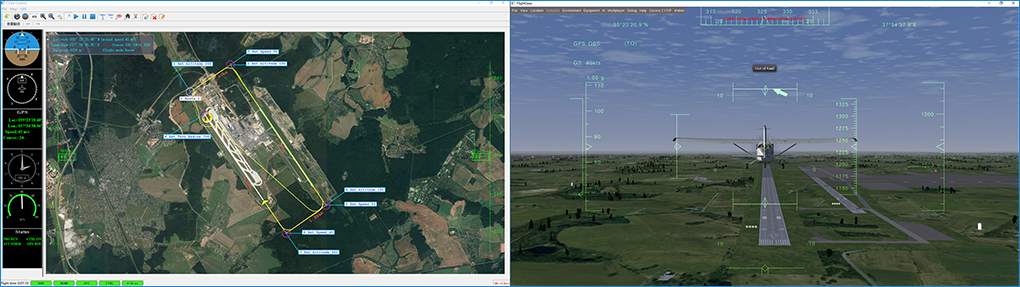 FlightGear 飞行模拟器组成的半物理仿真系统。
