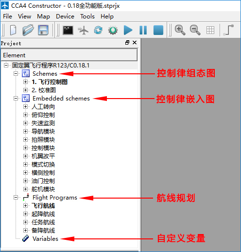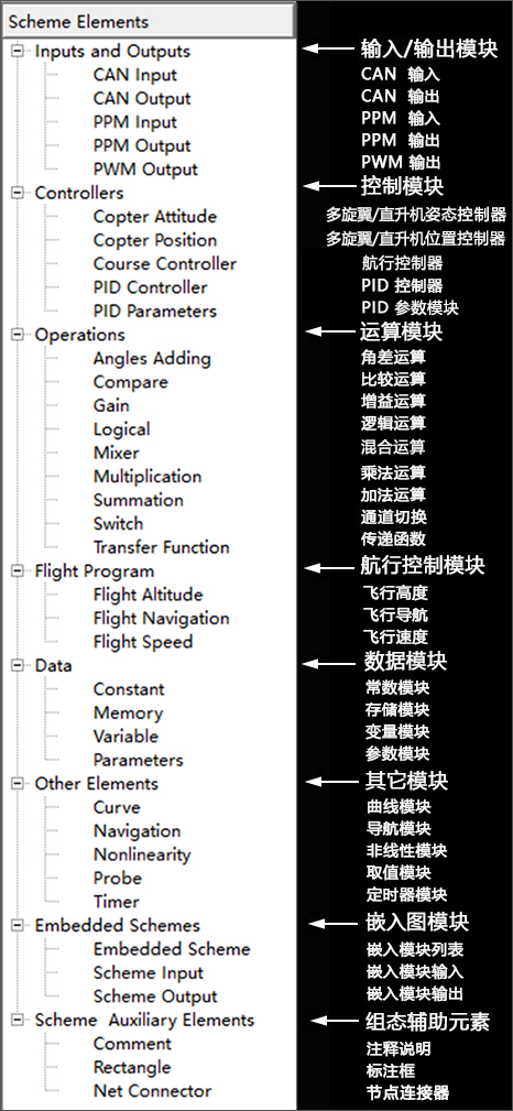 CCA42工业级多功能图形化可编程飞行控制系统,采用了类似于MATLAB和Simulink的控制律组态建模设计软件,只需简单操作鼠标连接相关的功能模块,无需编写代码就可以构建结构和流程直观清晰的飞行控制系统程序。