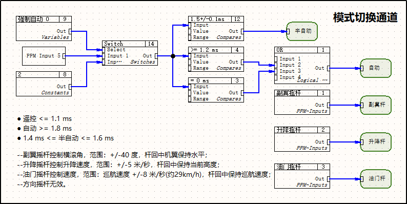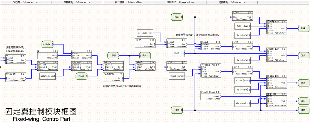 CCA42工业级多功能图形化可编程飞行控制系统,采用了类似于MATLAB和Simulink的控制律组态建模设计软件,只需简单操作鼠标连接相关的功能模块,无需编写代码就可以构建结构和流程直观清晰的飞行控制系统程序。